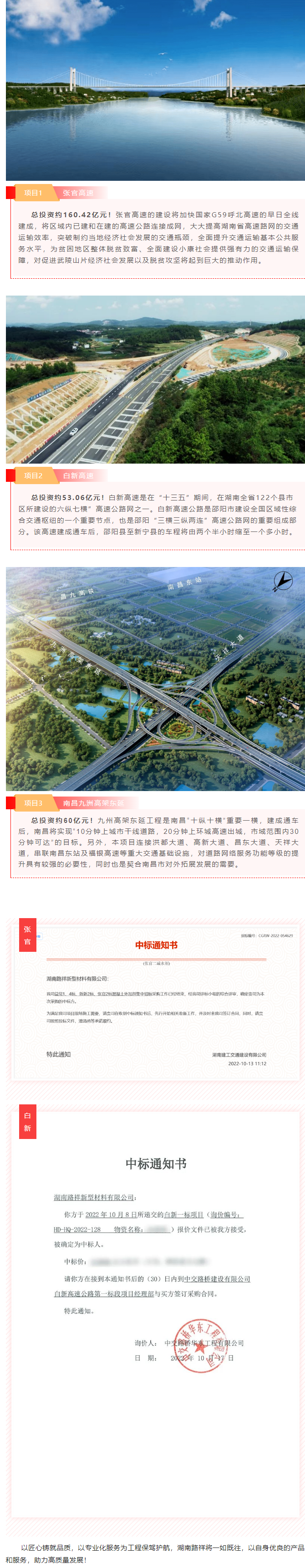 程項目,其中,張官高速項目順利中標,進一步提升我司在華中區域的減水劑市場占有率,