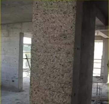 二、麻面 (1)同“蜂窩”原因; (2)模板清理不凈,或拆模過(guò)早,模板粘連; (3)脫模劑涂刷不勻或漏刷; (4)木模未澆水濕潤(rùn),混凝土表面脫水,起粉; (5)澆注時(shí)間過(guò)長(zhǎng),模板上掛灰過(guò)多不及時(shí)清理,造成面層不密實(shí); (6)振搗時(shí)間不充分,氣泡未排除。 1、防治措施 ①模板要清理干凈,澆筑混凝土前木模板要充分濕潤(rùn),鋼模板要均勻涂刷隔離劑; ②堵嚴(yán)板縫,澆筑中隨時(shí)處理好漏漿; ③振搗應(yīng)充分密實(shí)。 2、處理方法 ①表面做粉刷的可不處理; ②表面不做粉刷的,應(yīng)在麻面部位充分濕潤(rùn)后用水泥砂漿抹平壓光。